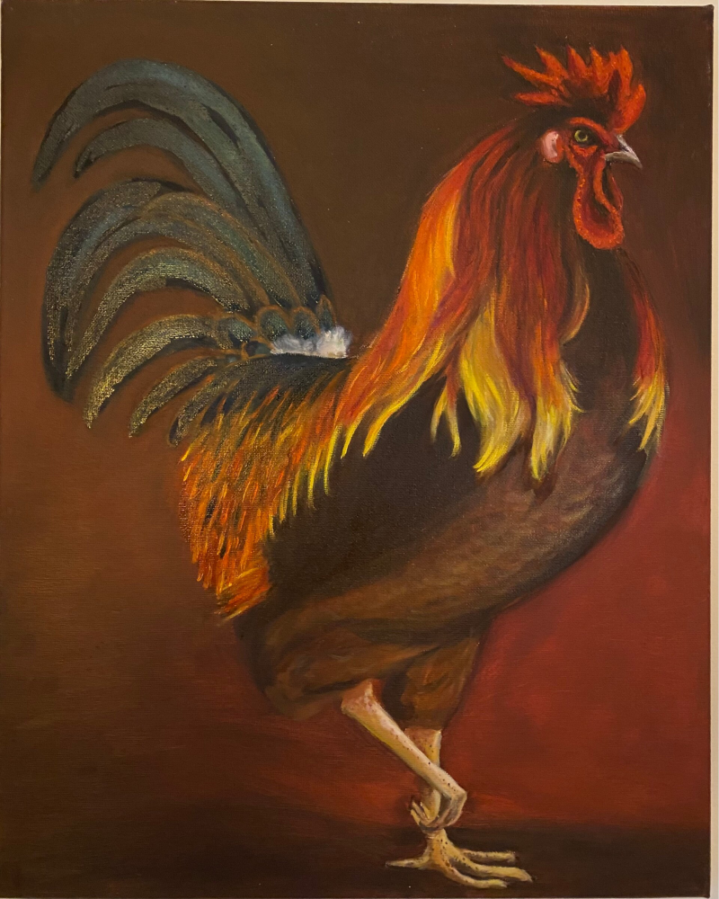 Haan, olieverf. Afmetingen 40x50,. Prijs zonder lijst €160,-