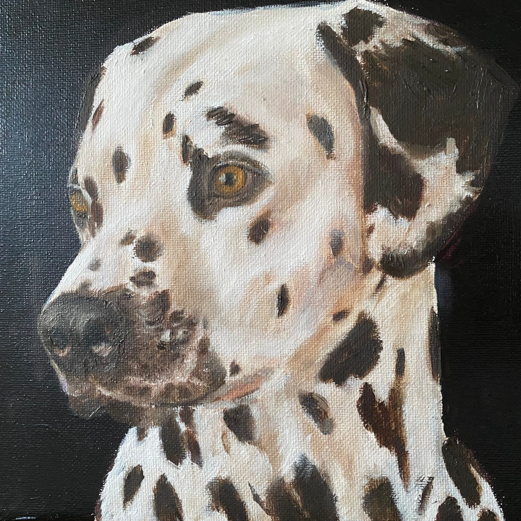 Dalmatiër, olieverf. Afmetingen 20x20 . Prijs zonder lijst